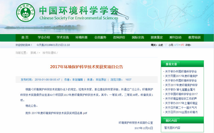 “環(huán)境保護(hù)科學(xué)技術(shù)獎(jiǎng)”是我國(guó)環(huán)境保護(hù)科研領(lǐng)域中的重要獎(jiǎng)項(xiàng),旨在鼓勵(lì)環(huán)??萍紕?chuàng)新,獎(jiǎng)勵(lì)在環(huán)??蒲谢顒?dòng)中做出突出貢獻(xiàn)的單位和個(gè)人,充分調(diào)動(dòng)環(huán)境科學(xué)技術(shù)工作者的積極性和創(chuàng)造性,加速環(huán)境科學(xué)技術(shù)進(jìn)步,推動(dòng)我國(guó)環(huán)保事業(yè)的發(fā)展。