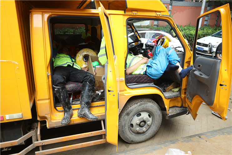 7月23日6點(diǎn),中節(jié)能國禎抽調(diào)6名專業(yè)工程人員組成第二突擊隊(duì),攜帶3輛皮卡巡查車、4臺搶險(xiǎn)泵奔赴河南。11時(shí)與第一突擊隊(duì)匯合,共同參與鄭州隆福國際小區(qū)地下車庫排澇作業(yè)。